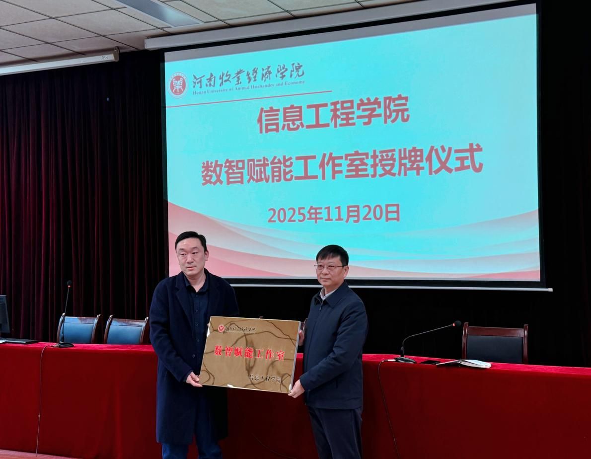 11月20日下午,信息工程学院“数智赋能工作室”揭牌仪式在英才校区E110会议室隆重举行。学院全体教职工齐聚一堂,共同见证这一重要时刻。仪式由学院党委书记张聪慧主持,院长王硕为工作室授牌并致辞。